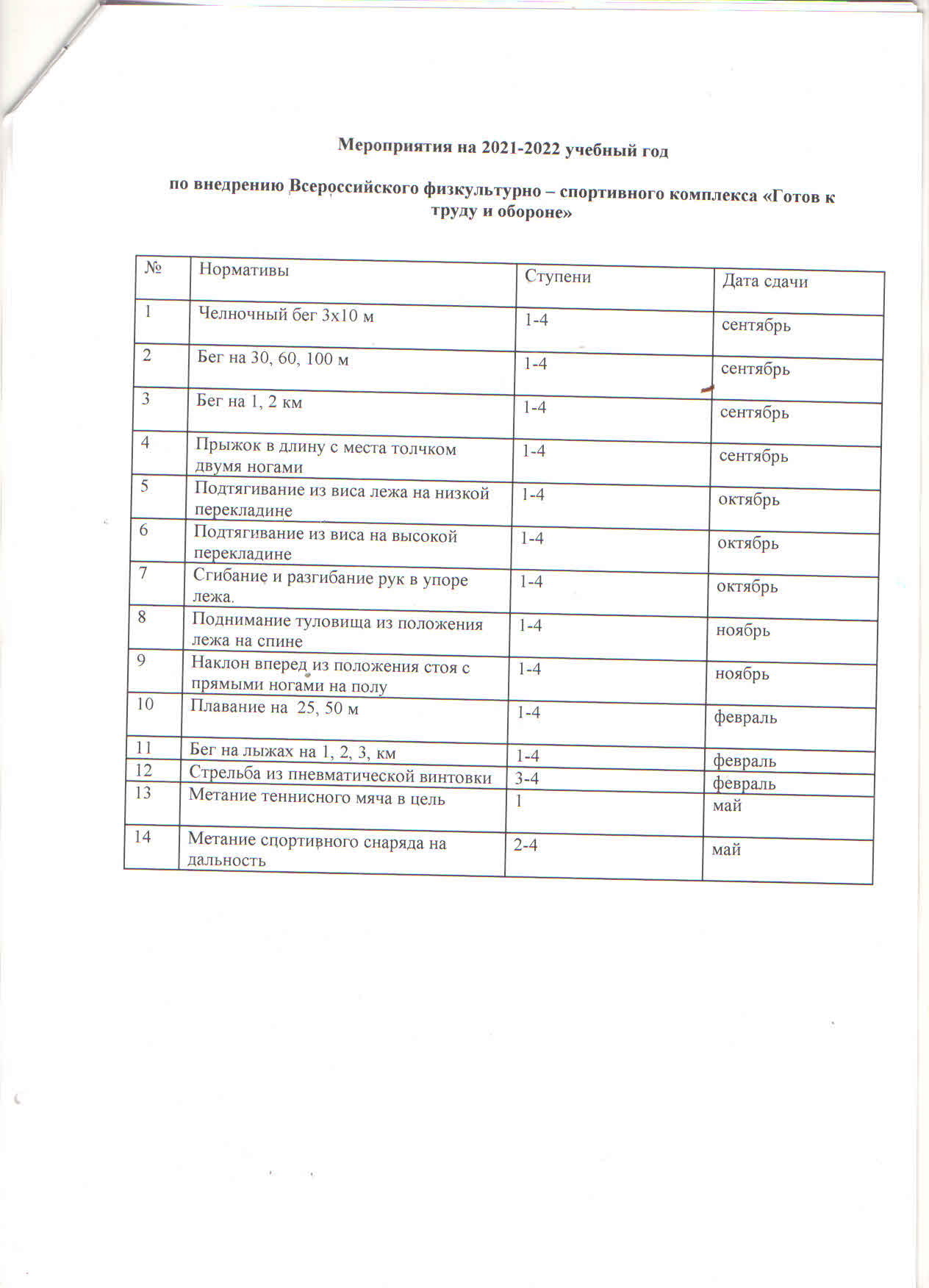 Мероприятия на 2021-2022