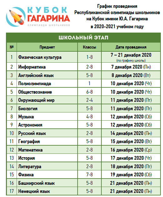 Внимание! Изменения! Школьный этап Олимпиады Кубок Гагарина